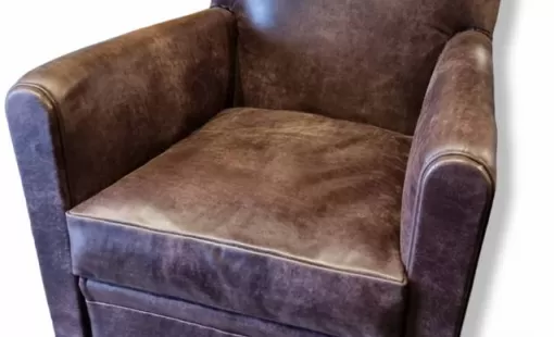 Restauration d'un fauteuil vintage des années 1950-1960 en skaï rouge et noir.