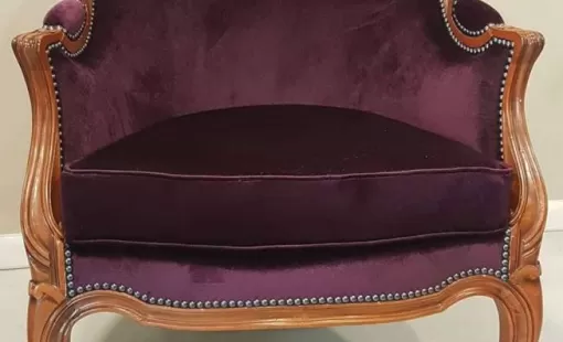 Restauration d'un fauteuil Voltaire réalisé par une élève en cours de Loisirs créatifs.