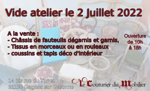 Le Samedi 2 Juillet un grand vide atelier sera organisé à l'atelier de Vincent à Gagnac sur Garonne.